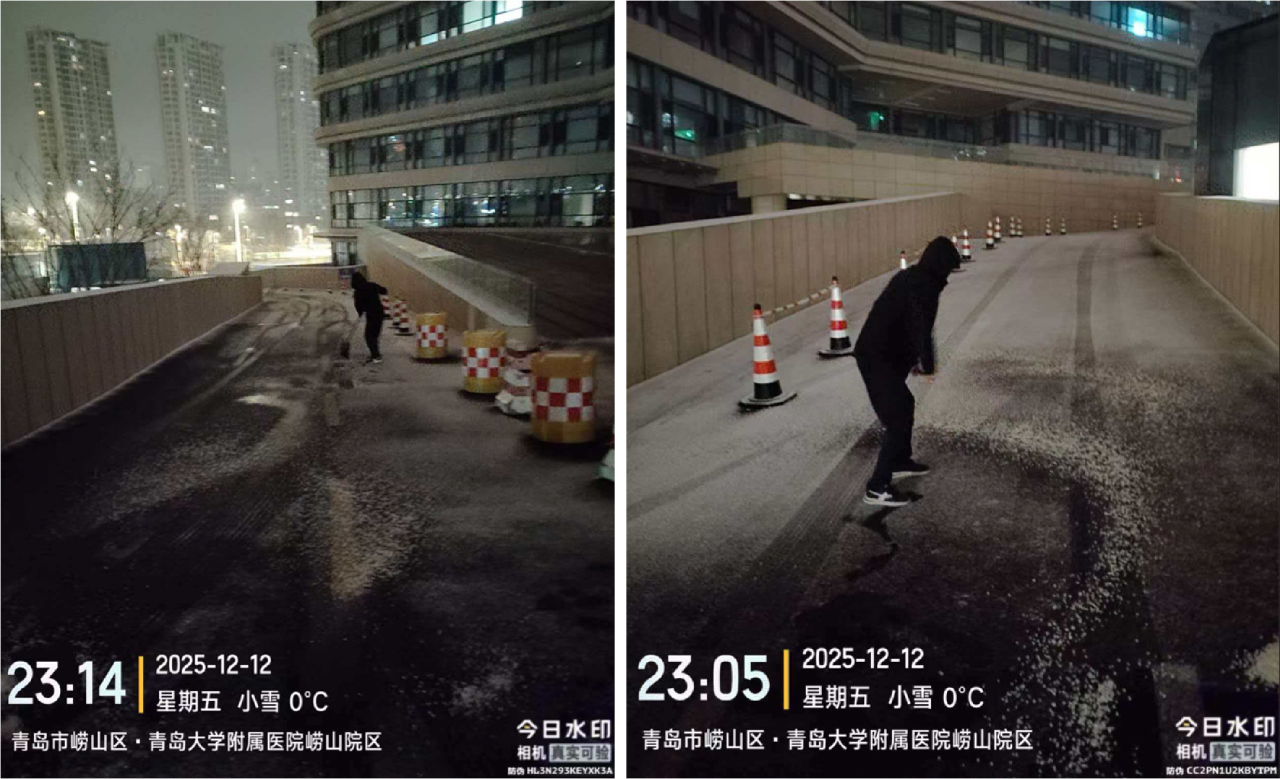 雪情就是命令,行动温暖民心。12月12日降雪伊始,公司运营的各停车场立即进入“战雪”模式。青大附院崂山院区停车场考虑到就医市民的出行需求,连夜清扫出入口积雪,确保就医市民车辆能顺利进出。