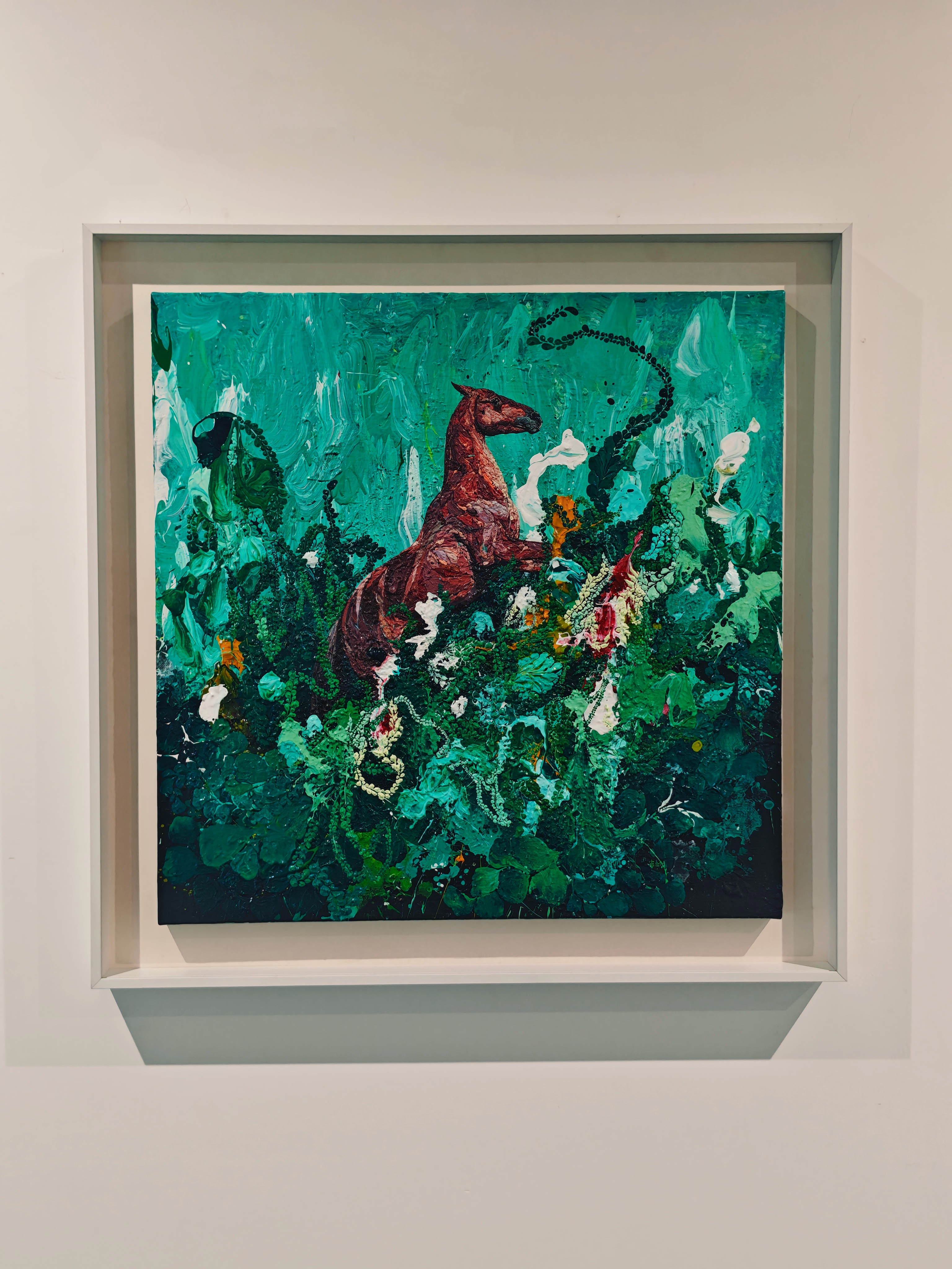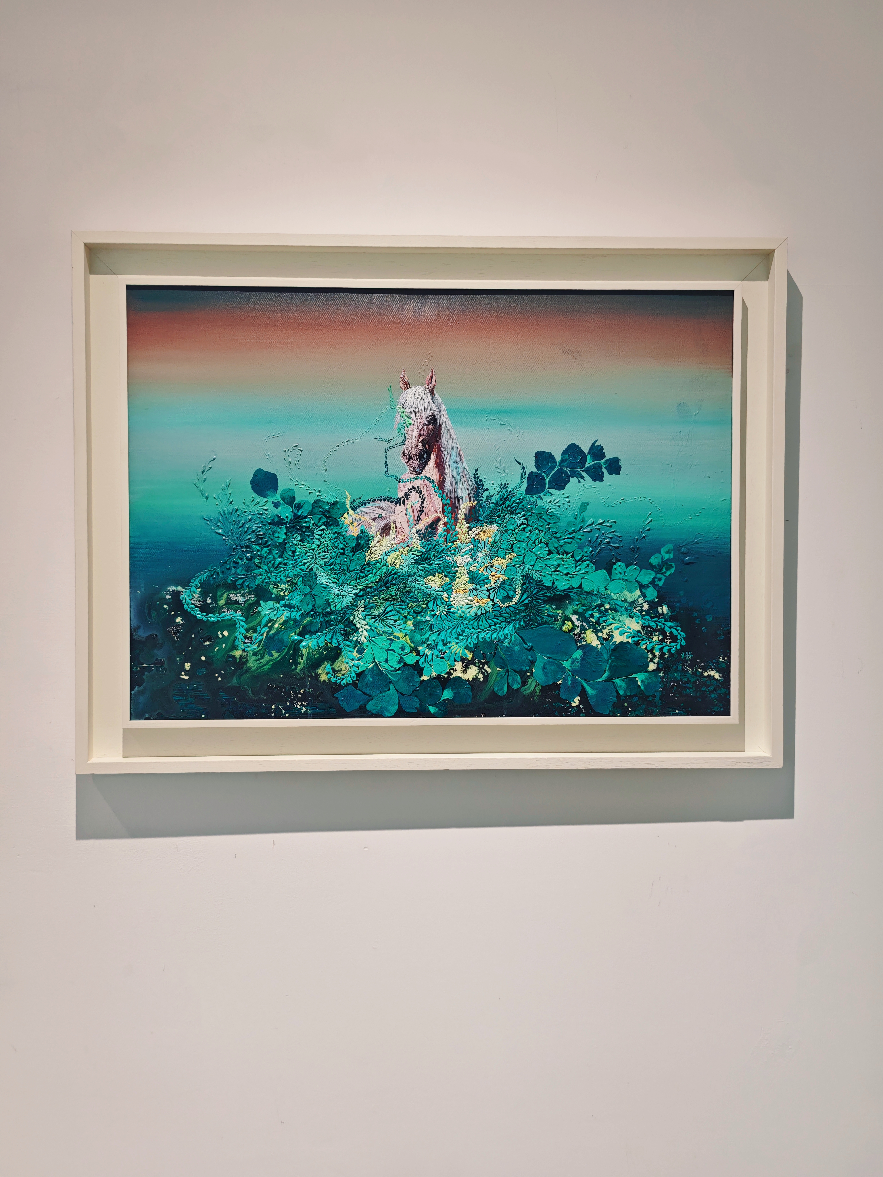 他反复描绘的“马”,可不只是简单的动物,而是被提升为强大的精神符号,时而静谧地融入森林,与自然融为一体;时而充满张力地跃起,展现出无尽的生命力。宋赫对这一母题不同情绪与状态的探索,细腻又深刻。