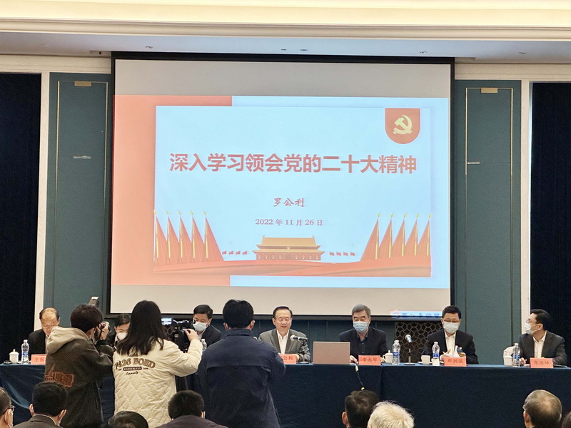 中国社科院研究员朱继东,中国政治学会副会长包心鉴,山东大学党建研究中心主任王韶兴,山东科技大学党委书记,党的二十大代表罗公利等专家围绕学习贯彻党的二十大精神作报告。