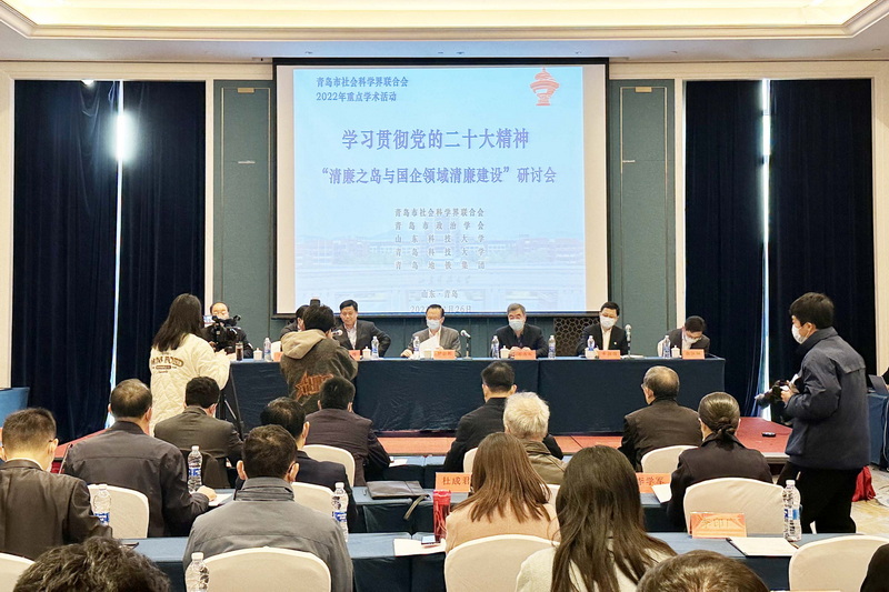 2022年11月26日,作为青岛市社科联2022年度重点学术活动“青岛社科学术年会”之一的“学习党的二十大精神:清廉之岛与国企领域清廉建设理论研讨会”在青岛西海岸新区召开。本次会议由青岛市社科联、青岛市政治学会、山东科技大学、青岛科技大学、青岛地铁集团主办,山东科技大学马克思主义学院承办,来自青岛高校、党校等单位专家学者参加会议。
