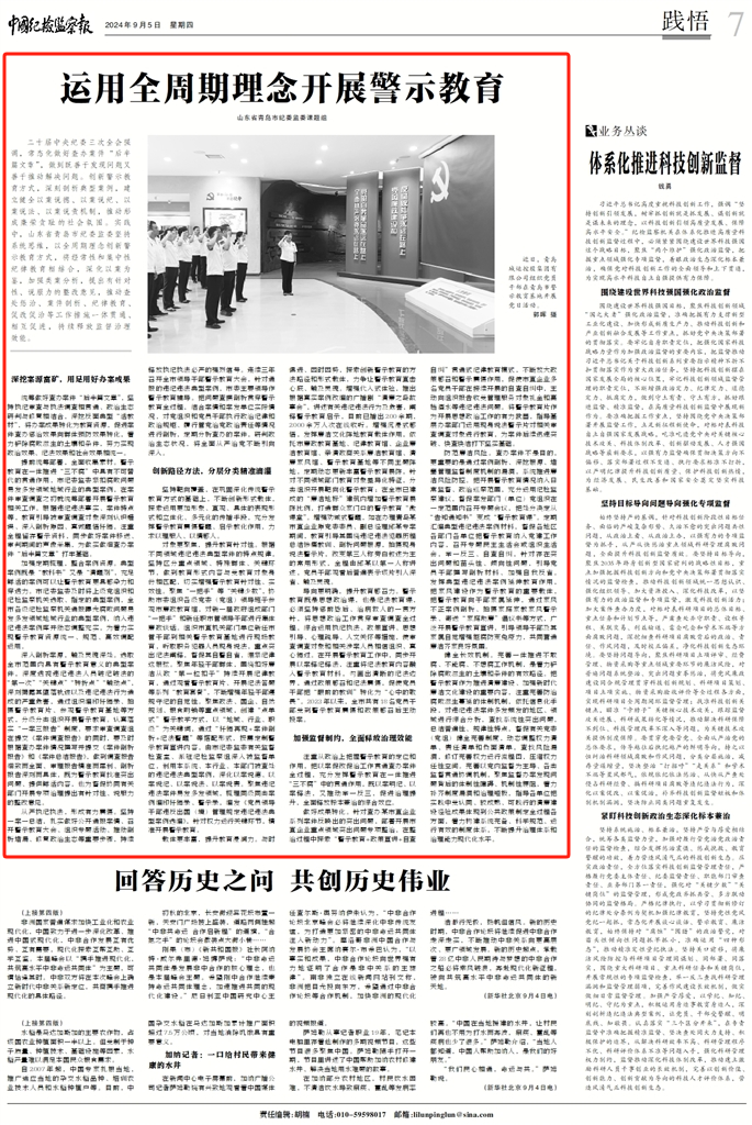 二十届中央纪委三次全会强调,常态化做好查办案件“后半篇文章”,做到既善于发现问题又善于推动解决问题。创新警示教育方式,深刻剖析典型案例,建立健全以案说德、以案说纪、以案说法、以案说责机制,推动形成廉荣贪耻的社会氛围。实践中,山东省青岛市纪委监委坚持系统思维,以全周期理念创新警示教育方式,将经常性和集中性纪律教育相结合,深化以案为鉴,加强类案分析,提出有针对性、说服力的整改意见,推动查处惩治、案件剖析、纪律教育、促改促治等工作措施一体贯通、相互促进,持续释放监督治理效能。