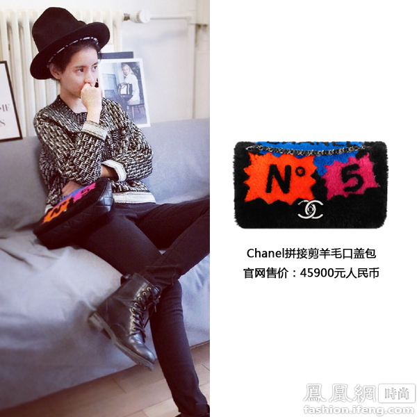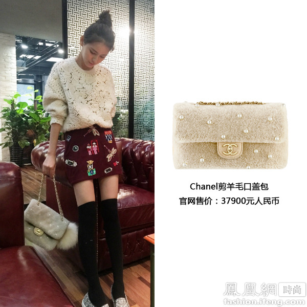 张予曦拎Chanel珍珠装饰剪羊毛口盖包