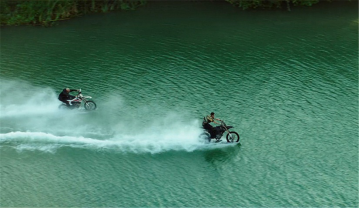 除了同类型影片常见的生死时速的飙车特技和激烈的枪战,电影《极限特工:终极回归》还致力于将人类身体潜能发挥到极致,为观众带来更加震撼的观影体验。《极限特工:终极回归》不再局限于陆地飙车,而是打破空间限制,将山地越野摩托狂飙入海,通过巧妙的改装,让范·迪塞尔和甄子丹用摩托车在海上玩起了破浪追逐。不仅如此,高楼酷跑破窗国家安全会议室、脚穿滑橇一跃而下做自由落体运动、借助山势在高山丛林中穿梭速降、超快速花式滑板等等都让观众肾上激素飙升。这些极限特技场景已经不仅仅是打破空间界限,同时也挑战着速度的极限。