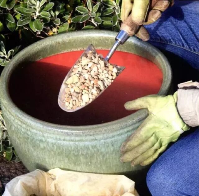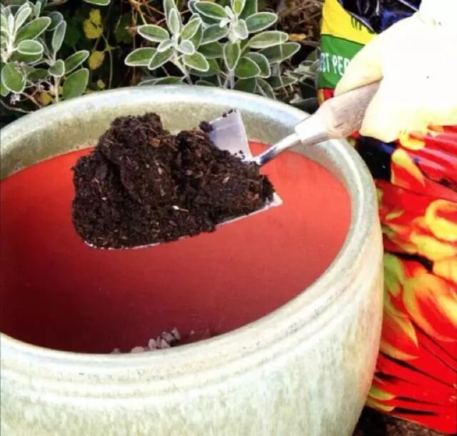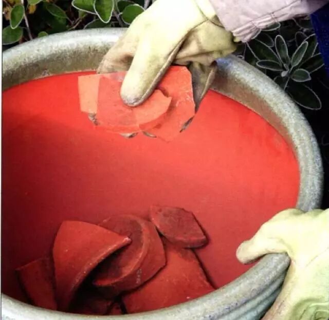 选择一个有良好排水孔的花器.然后用花盆碎片覆盖住排水孔,打碎的花盆或瓦片都可以,它们会防止泥土堵塞排水孔,也将阻止水分的直接流失。