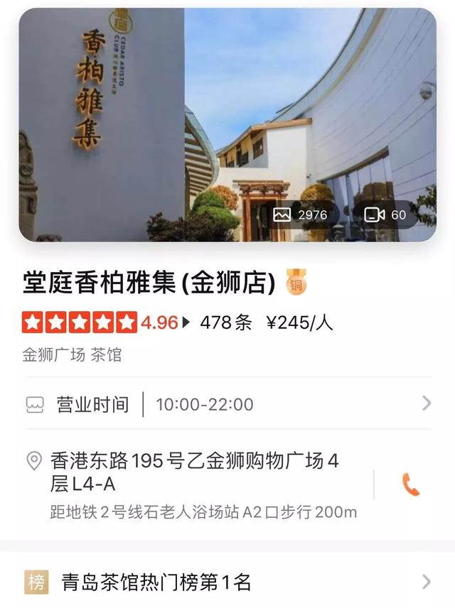 大众点评目前“青岛茶馆热门榜”第一名,曾是电视剧 《遇见幸福》的取景地,自2016年开业以来,不少摄影爱好者、游客都把这里作为青岛必打卡之地慕名而来。