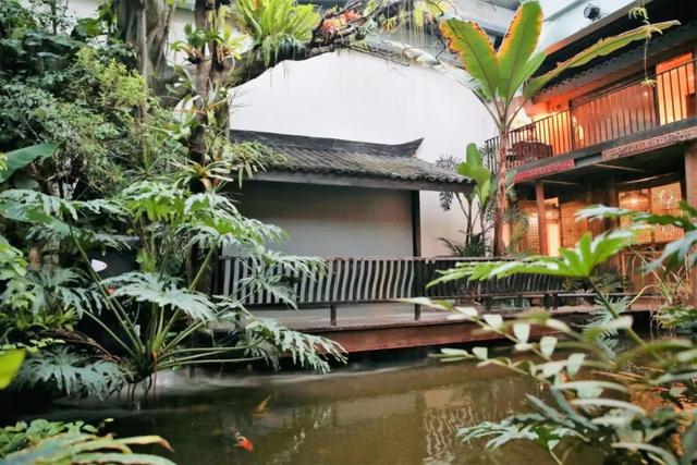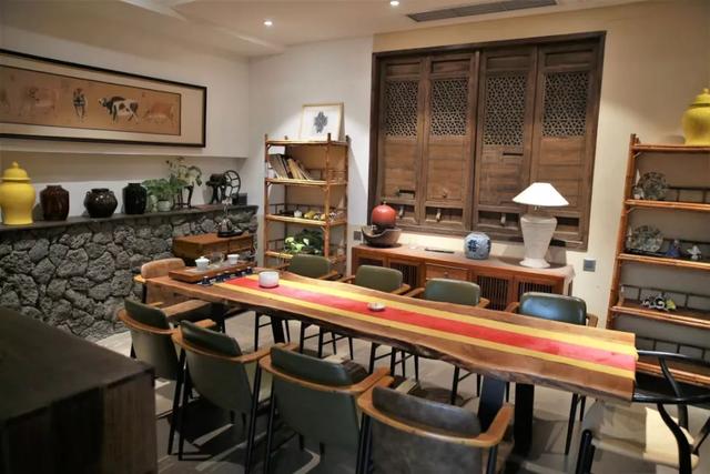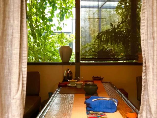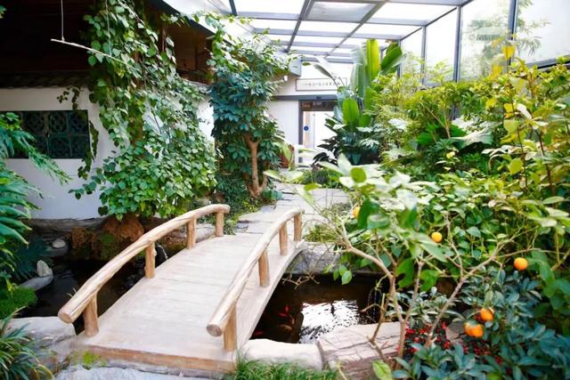 庭院内种植了无根凤梨、狐尾椰树、佛肚竹、龙眼、杨桃、柠檬等等100余种植物,多数由南方及东南亚地带移植而来。茶舍装置了地暖和恒温恒湿系统,四季温润。执一杯清茶,低头看水池里悠游的鱼儿相映成趣,抬头望苍翠欲滴的绿植......这也许就是诗中所说“偷得浮生半日闲”的意境吧。