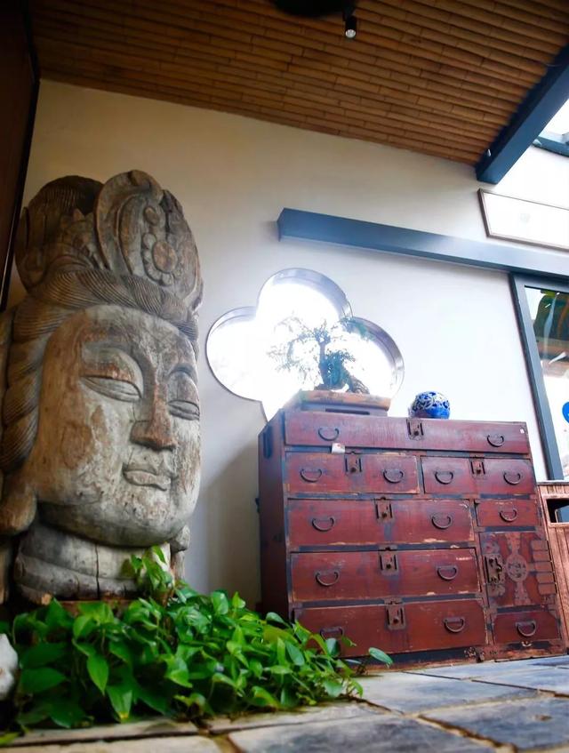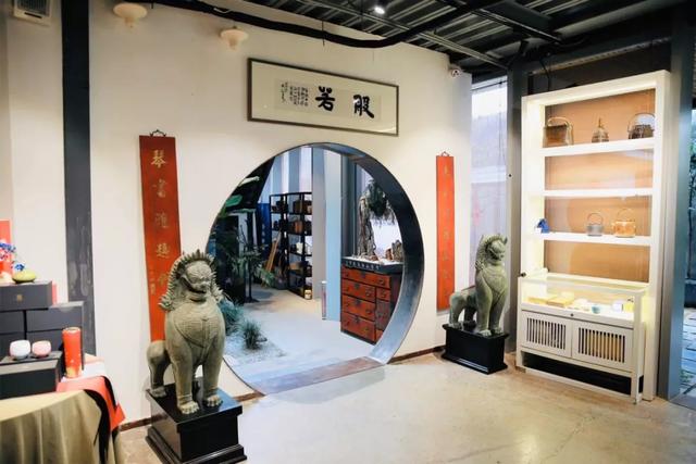 香柏雅集的老板不仅爱茶,也热衷收藏。茶舍内很多老家具、雕塑,以及展示柜里摆放的杯盏、摆件等等,都是老板游历四方的收藏,价值不菲。