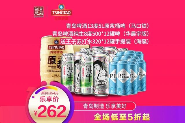 7折抢!13度5L原浆桶啤+纯生8度500*12罐啤(加送王子苏打水320*12罐)