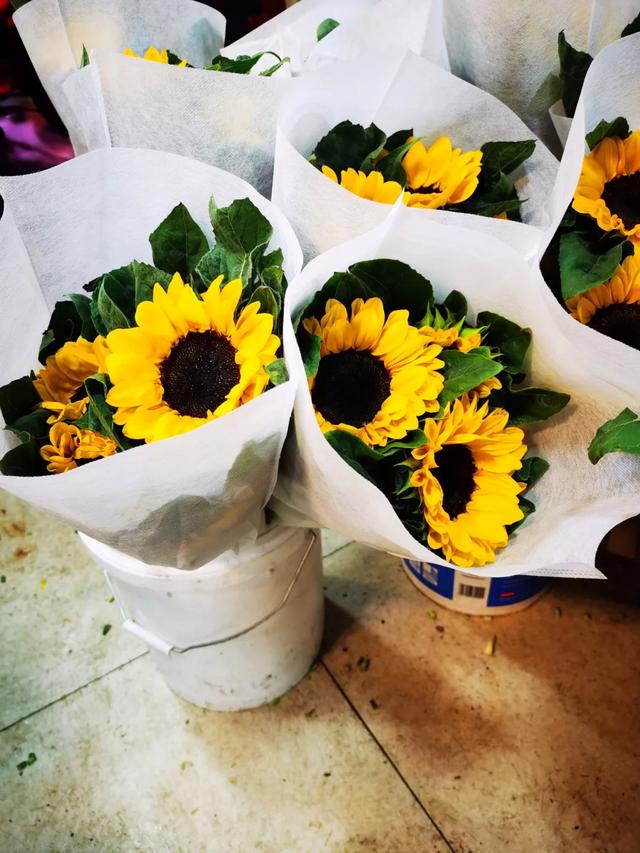 小编在现场了解到向日葵30元一捧,热烈的黄色,非常美丽大方。