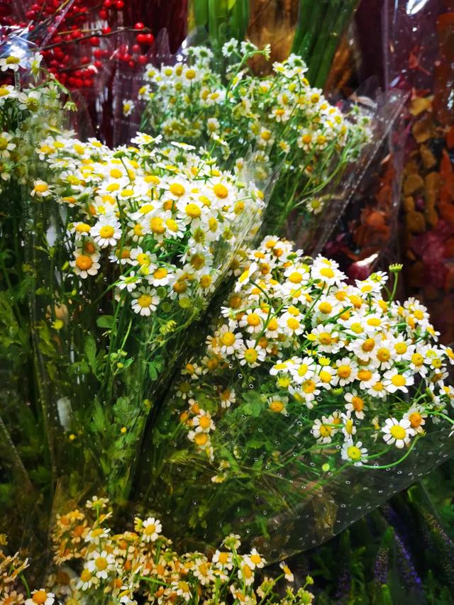 洋甘菊25块钱一扎,黄色的芯白色的花瓣,给人一种青春的向上感,呆萌可爱。