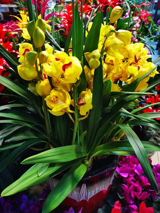 大花蕙兰在盆花中,节日气氛最浓郁,花朵大而艳丽,是非常适合室内盆栽养殖的花。大花蕙兰130元一盆,美的十分大气。