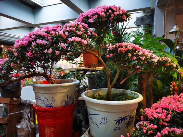 杜鹃花价格差距很大,普通的80、150、180元,贵的有360元,600元的,最贵的是1200元,如同扇子一般的杜鹃花最贵,十分大气。