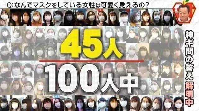 日本有一档综艺节目《summers的神疑问》,曾在街头随机采访了100名戴口罩的女孩,而只有45人愿意在摄像机前摘下口罩。