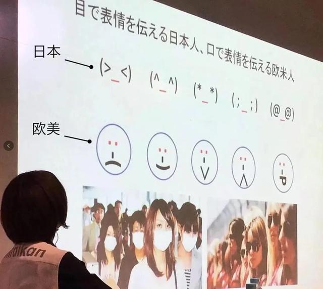 前段时间看到这张图很有趣,说的是日本人用眼睛传达情绪,欧美人用嘴巴传达情绪。