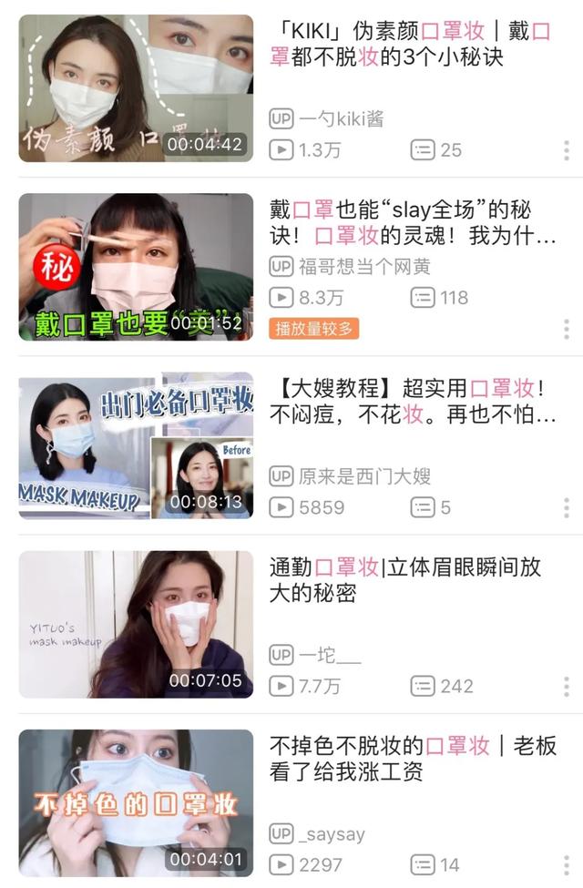 这一疑问也被在网上剁手的仙女们证实:戴口罩的时候,彩妆还是能大卖。上B站一看,美妆博主们复工后的第一桶金也几乎都是“口罩妆”给的。