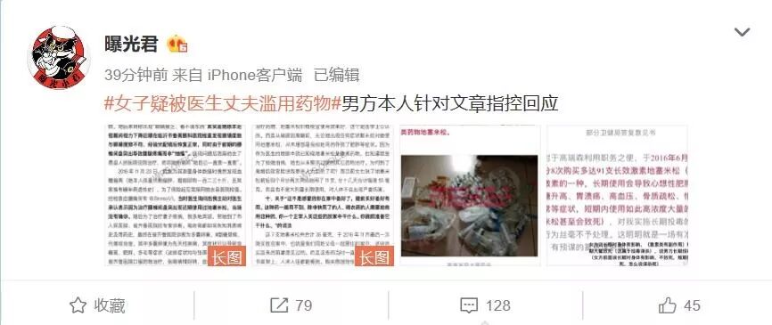 7月16日上午疑似高某借助@曝光君,发布对“女方指控”的回应。