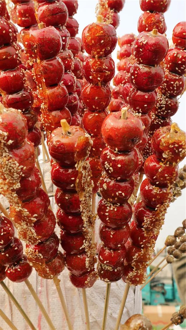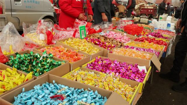 来大集置办年货,自然也不能忘记买些点心、干果。柿饼挂着糖霜吃起来甜甜糯糯的,还管饱。纸皮大核桃老人小孩都爱!
