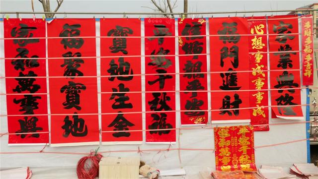 过年要的就是红红火火,今年的大集上摆放了一整条街的春联、福字可是香饽饽。一眼望去红红火火最显年味儿,五花八门的对联和中国红福袋一字排开,一家挨着一家。