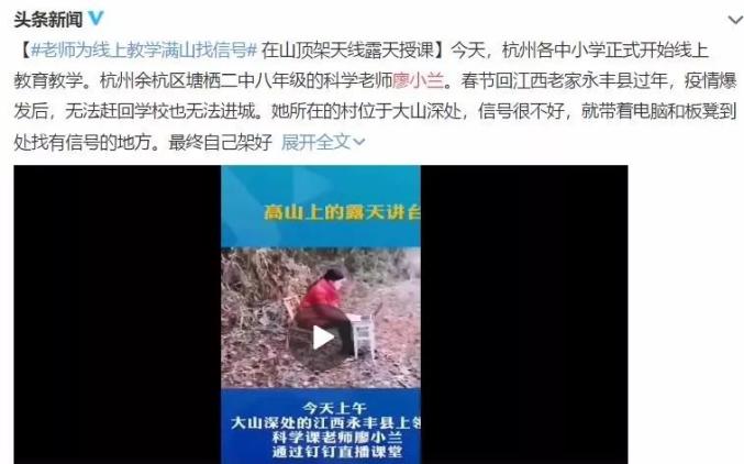 还有个老师爬到山上满山找4G信号,给远方的学生上网课