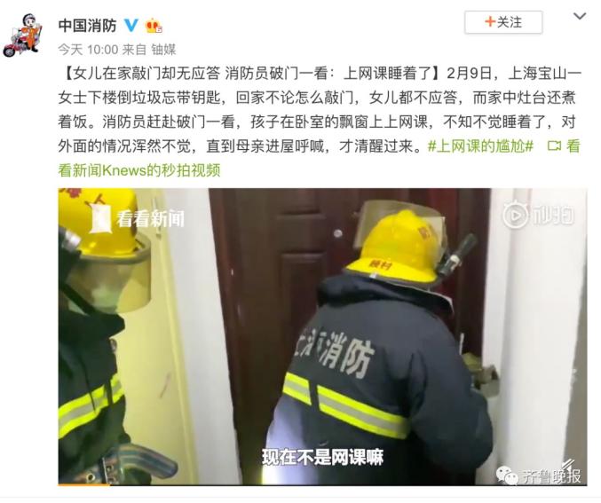 女儿在家敲门却无应答,消防员破门一看:上网课睡着了