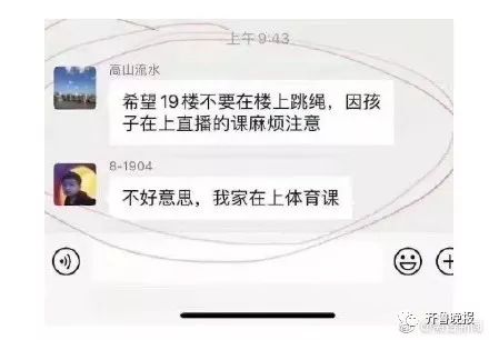 希望19楼不要在楼上跳绳,孩子在上直播课