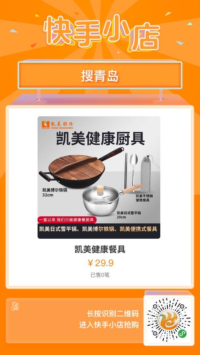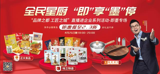 4月26日(周日)18:00-20:00,关注快手@搜青岛,进入直播现场,特价炒锅、爆浆鸡排、下饭神器…优惠低至2.3折,好礼送不停!