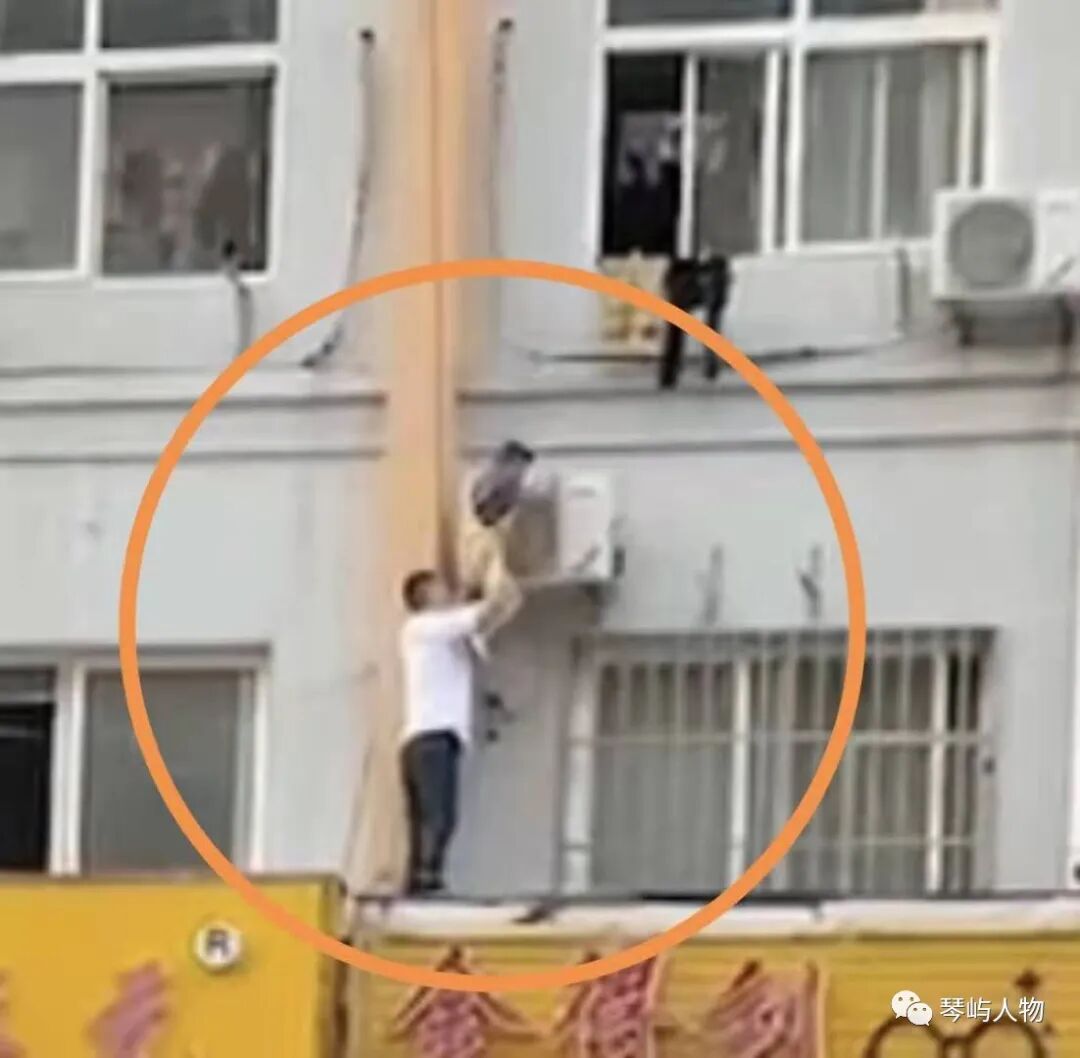 在二楼窗沿上稍有不慎就会跌落坠下,