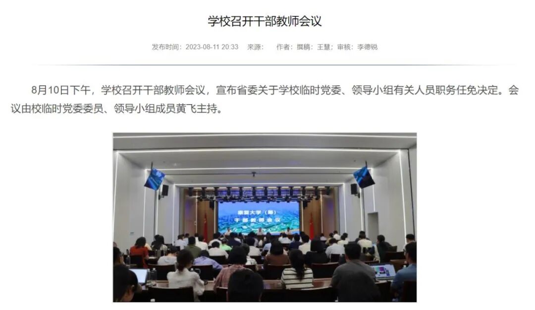 8月10日下午,康复大学(筹)召开干部教师会议,宣布省委关于学校临时党委、领导小组有关人员职务任免决定。省委批准王伟同志任康复大学(筹)临时党委副书记、领导小组常务副组长,李欣章同志不再担任康复大学(筹)临时党委副书记、领导小组常务副组长职务。
