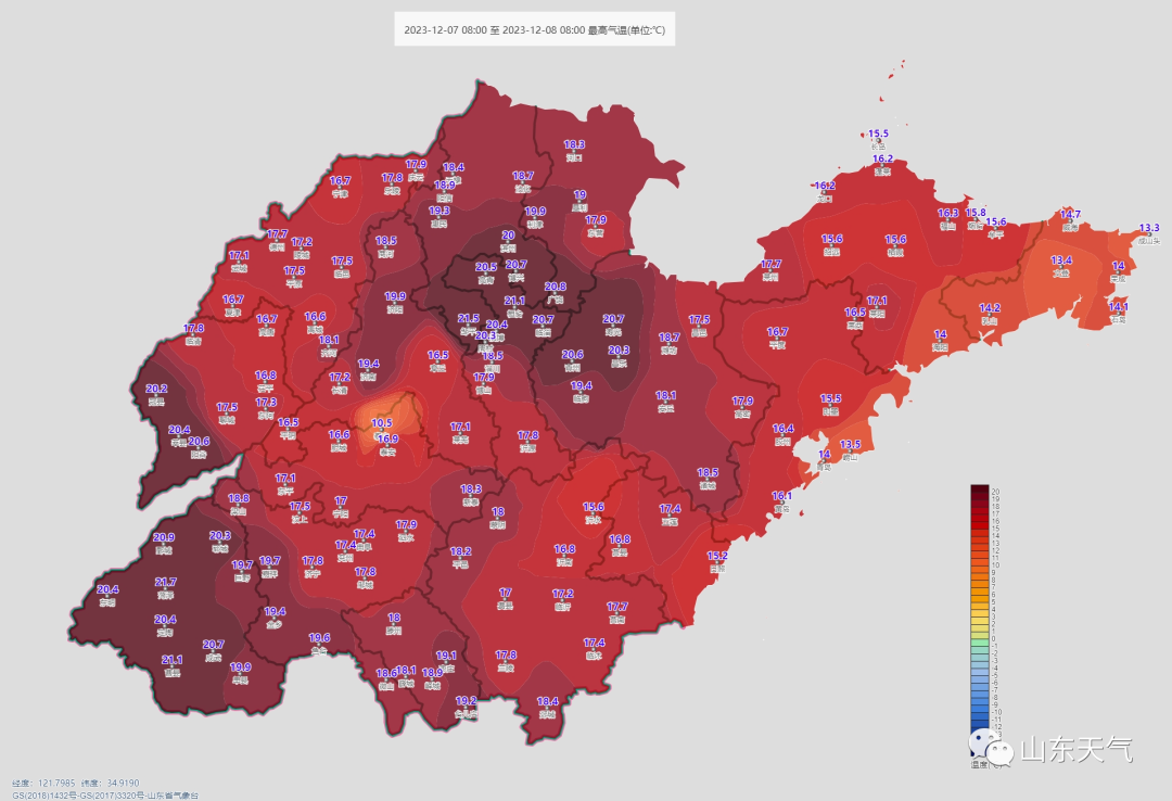 菏泽聊城淄博潍坊的部分地区超过20℃