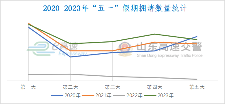 根据2020年-2023年“五一”假期道路拥堵数据统计,假期第一天最拥堵,其次是假期第四天因为提前返程容易出现拥堵小高峰。另外,“五一”假期第二天的道路拥堵数量最低,更适合通行高速。