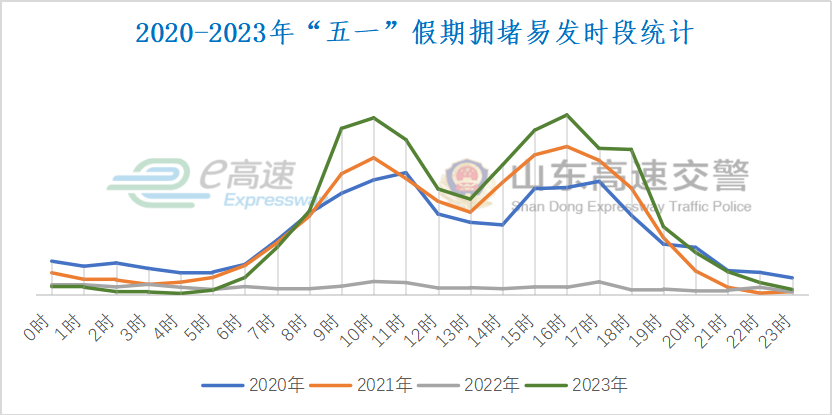 根据2020年-2023年“五一”假期拥堵发生时段统计,拥堵高峰时间为:上午9时至11时和下午15时至18时,建议大家合理规划出行计划,尽量选择非高峰时间出行。