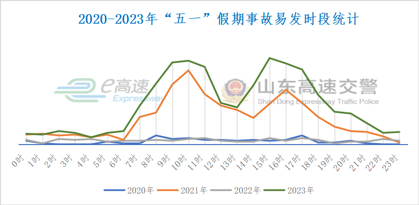 据2020年-2023年“五一”假期事故发生时段统计,上午9至11时,下午15时至16时、17时至18时、晚间19时至20时车流量增加,容易出现刮擦等事故。