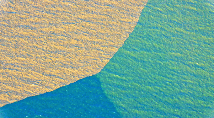 黄河从东营入海,造就了独特的生态环境。雄浑的黄河水与碧蓝的大海相互交汇,形成奇特的“黄蓝交汇”景观。