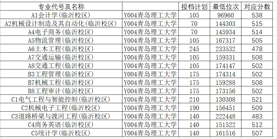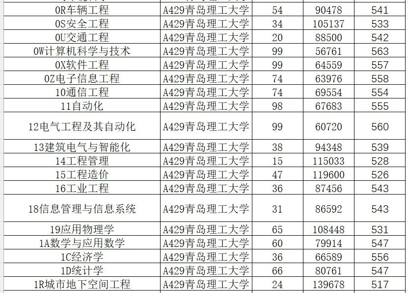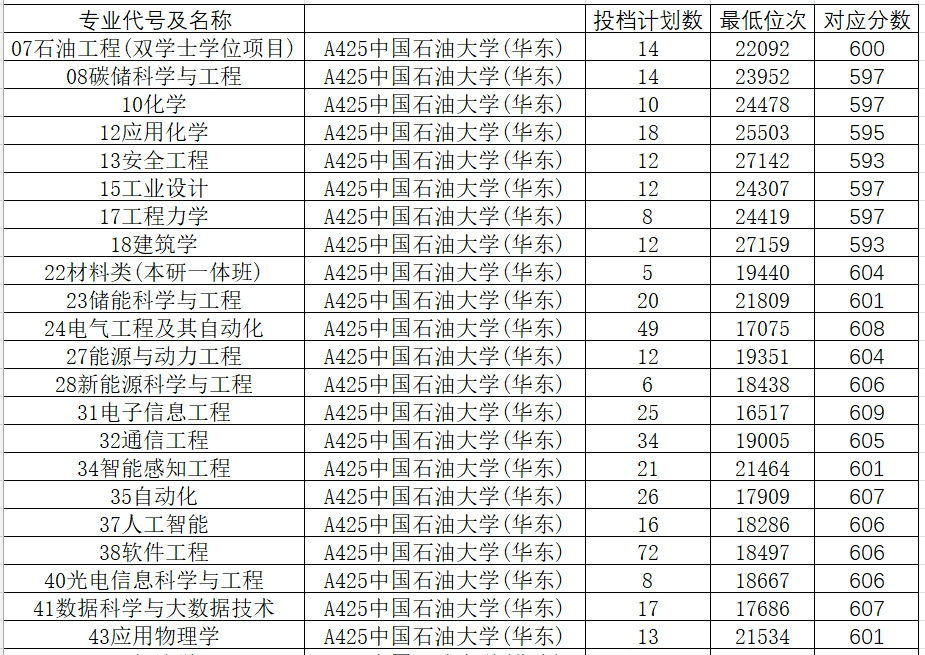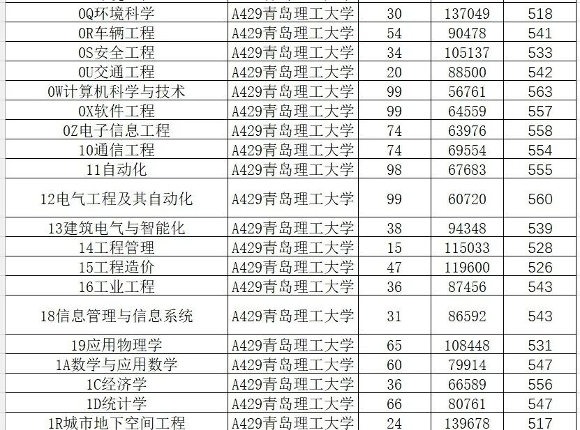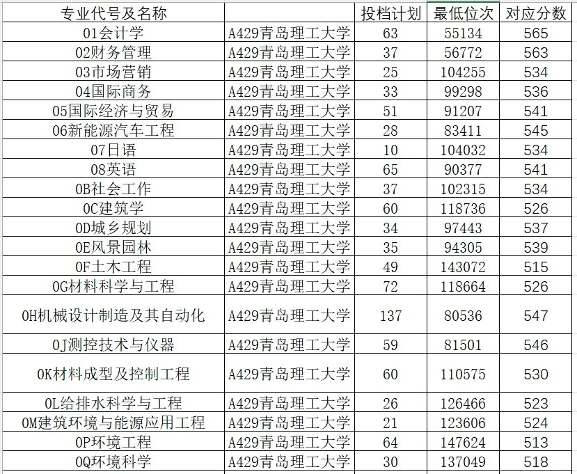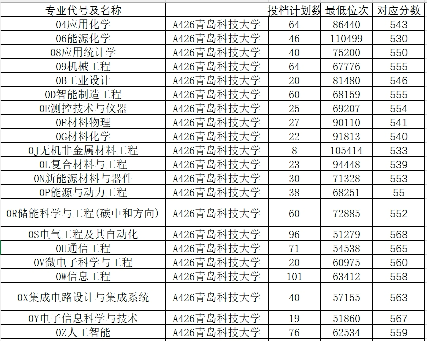 (能源与动力工程专业录取分数为555分,表格有错误,特此更正)