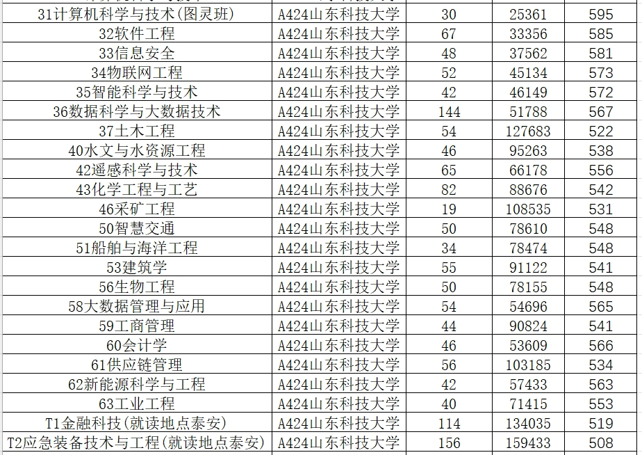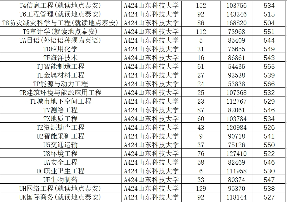 为防灾减灾科学与工程(就读地点泰安),504分;