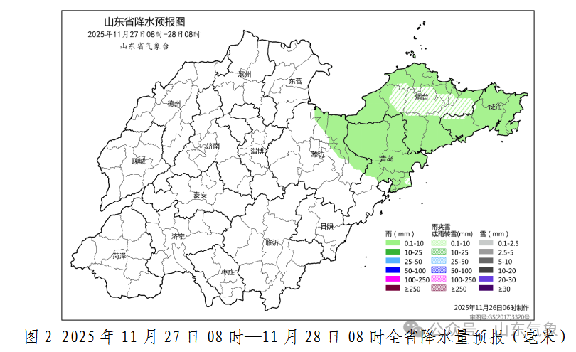 冷空气频繁影响我国,今天(11月26日)到12月初,还会有三股冷空气先后来袭,各地气温变化节奏快。预计,未来三天山东大部地区天气晴间多云;26日夜间至27日,冷空气将再次影响我省,东营北部、潍坊北部和半岛地区有小雨雪,各预报海区将出现偏北大风,全省大部地区气温下降4℃左右。11月29日至30日,还将有冷空气影响我省,局地降温明显。12月3日前后,新一轮冷空气又将来袭。公众请适时调整着装,谨防感冒。
