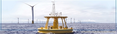 经海仪器研制的十米激光雷达剖面风场浮标正在海上工作。