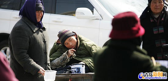 “門前一對老乞丐是兩口子,馬路對面那個領著孩子的女人是他們的兒媳婦,她身邊的小孩自然是老兩口的孫子。其實,來要飯的乞丐基本就那麼三四家。他們一早來了就散開,四處討要,到了晚上這些乞丐都各回各家,湊成堆分享‘戰利品’。”一位停車管理員對記者說。