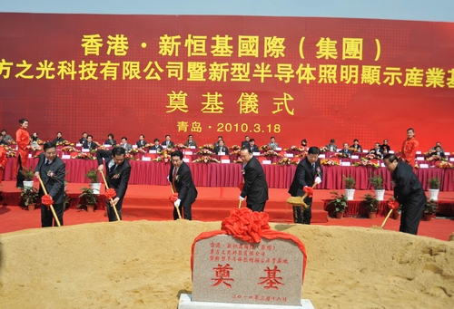 ![]() 青島新聞網3月19日訊 3月18日,香港新恆基國際(集團)有限公司“半導體照明顯示產業基地”奠基儀式在山東省膠州市舉行。這個預算總投資180億元的巨無霸項目,將使膠州平地崛起一個以化合物半導體外延片生長、芯片開發為龍頭,以激光產品、LED照明、顯示產品為骨干產品的化合物半導體產業集群。