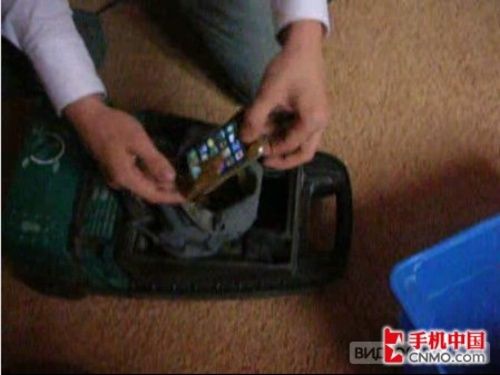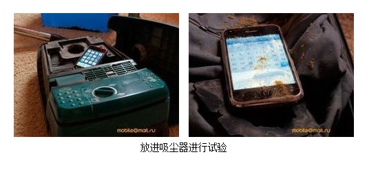 這個防塵測試較為特別,將iPhone開機裝入吸塵器塵土收納袋中,用吸塵器吸完同種泥土,約十分鐘後吸淨。打開塵土袋,取出iPhone,手機已經覆蓋滿了灰塵,好像剛從地里挖出來的一樣,但還是無恙。