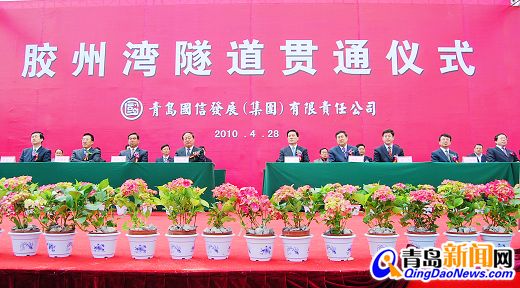 今天上午舉行的膠州灣海底隧道貫通儀式