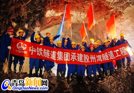 今天上午10時10分 膠州灣海底隧道全線貫通