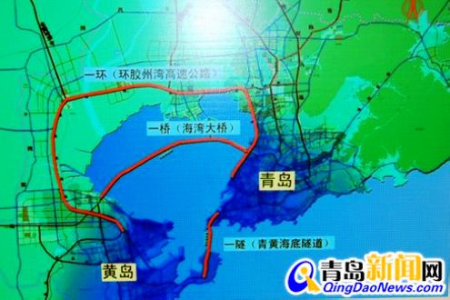 根據青島規劃“三點布局”由青島、黃島、紅島三片城區組成青島市中心城區,而膠州灣海底隧道建成後將串起“大青島”的三片中心城區。