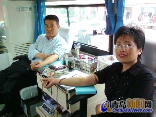 5月6日的青島市萊西月湖廣場獻血車上,上來一對中年男女。女子說︰“大夫,我弟弟是從西班牙回來探親的,我們一塊來獻血,為社會做點貢獻。”