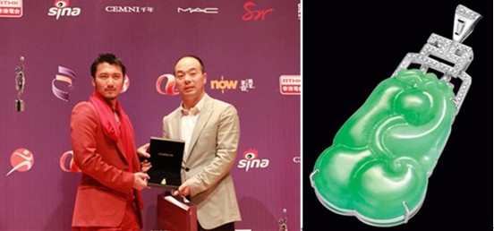 (金像獎頒獎禮上,謝霆鋒獲得最佳男主角,最佳衣著獎,同時獲贈CEMNI千年珠寶鼎祥翡翠)