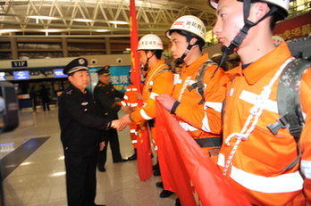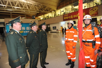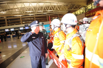 青島救援隊抵達西寧 乘機飛往玉樹