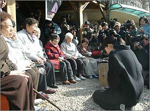 李成延穿着黑色风衣,没有化妆,象是没有整理过的头发随意的扎在后面,一脸的疲倦和沧桑表明这几天她已经心力憔悴。起初老人们对李成延的态度还比较温和,但是李成延除了道歉而没有提起写真底片和处理方法,老人们开始不接受李成延的道歉。表示除非李成延拿着底片和胶卷当场在她们面前烧毁,不然她们将永远不会接受她的道歉。老人们的情绪很激动。一些老人质问李成延这样的谢罪是不是真心的,也有一些老人也表示出了同情,表示:“出现这样后果只能怪你李成延不是生在别的国家而是生在韩国,你既然来了我们还是会原谅你的,因为你也是我们同一民族,也都是我们的孩子。”