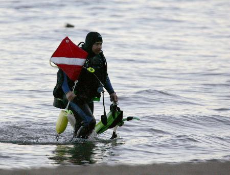 搜寻沉没游船“伊桑·艾伦”号的潜水员出水