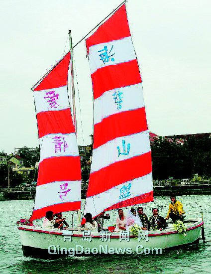 |  | | 由本报、交通银行、海岸(青岛)会议服务中心等单位主办的海誓山盟文化节昨举行,15对新人汇泉湾扬起了爱的风帆,千余市民和游客现场观看。 CCTV新闻频道今天下午4时播出。 |  | |