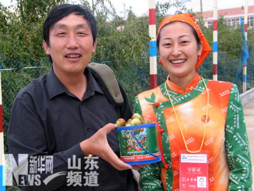 摘完枣,游客和枣妹导游合个影。(张汝锋摄影报道)